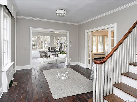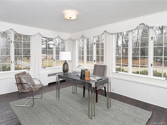 Room to Roam! Sitting prominently on 4.55 stunning acres on one of Darien's finest streets, is this spacious and stately Federalist Colonial with 10 Bedrooms (3 of which are in the detached Guest House with full kitchen). An entertainer's delight, a generous stone terrace invites you into large and gracious, sun-filled rooms where you'll find the formal living and dining rooms, a billiard's room, a family room with soaring beamed ceilings, an updated kitchen and mudroom. The rooms flow seamlessly to expansive outdoor spaces where you will find a pool, gardens, a greenhouse, and room to roam. Updated, yet maintaining its timely grandeur, this home is ready for your Gatsby-esque parties. Per homeowner, possible 2 lot subdivision with certain criteria. See listing broker for details.