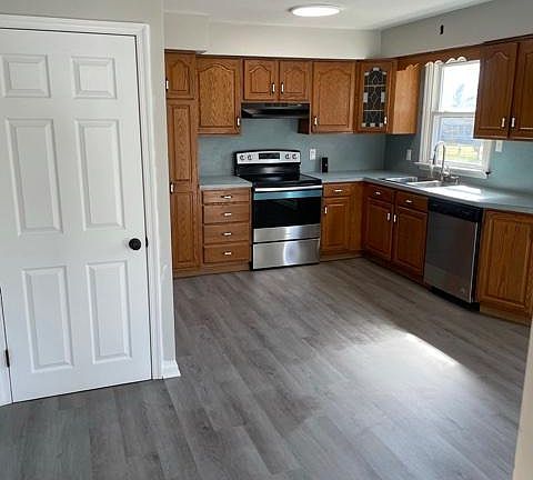 Totally renovated ranch home in the desirable Mountain Top area. Newly installed roof, siding, stone on front April 29, plumbing, electrical, heating, painted walls, stainless appliances, Bruce hardwood flooring, and bath. It has 3 bedrooms and 1 bath. The lot size is 3/4 of an acre. Also has a large, covered cedar deck for enjoyment in the summer months. Included in the rent is water and sewer. Tenant to pay just electric, and trash removal. Tenant responsible for snow removal and lawncare.