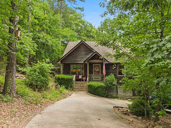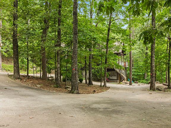 Are you looking for a Cabin in the Woods outside of Town with a Lake View! This is it. This Cozy Cabin sits on 3.11 acres +/- & backs up to Barefoot Alley. Originally Built by a well known builder in the area, "T-1 Construction". Secluded, wooded,Lakefront Lot w/paved circle driveway. Covered deck looking towards lake (larger lake view in the fall & winter). Main level of home includes vaulted tongue & groove ceilings in Kitchen & Living room,powder room,laundry room,covered back deck, Master Suite w/Large Walk in closet & full bath. Downstairs includes 2 guest bedrooms, one full bathroom, & a Bonus Room.Cabin is surrounded by woods & beautiful rock bluffs.