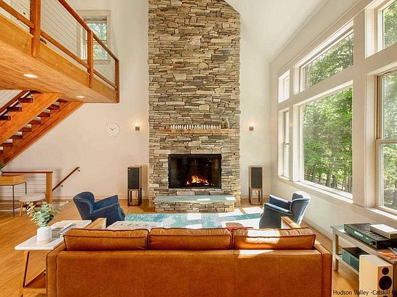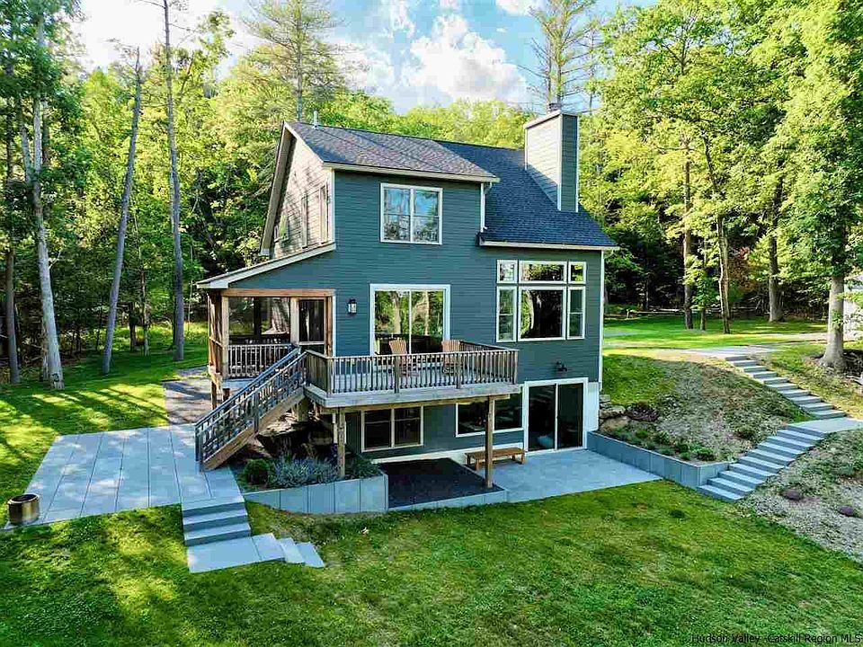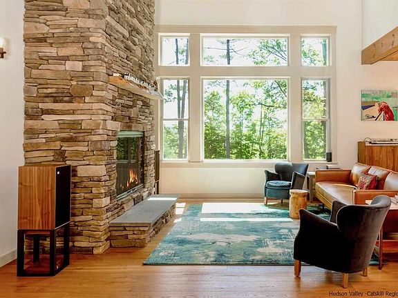 Like new construction on just under 10 acres, built by one of the area's high quality builders, it's being offered for sale again complete with mature lawn and two large custom bluestone patios and staircases connecting upper level and lower exterior levels seamlessly. Sited down a long driveway, far off the quiet country road, with complete privacy and seclusion just minutes outside Historic Kingston and Stone Ridge, the convenience of the location is unparalleled. A perfect blend of modern and rustic, this well maintained home offers all the high demand features such as open floor plan, high ceilings, large oversized windows and doors, cedar screened porch and decking, radiant floor heating supplemented by healthier energy efficient Mitsubishi ductless heat pumps that provide supplemental climate control all year round. This list goes on with two-story oversized wood burning stone fireplace, finished walkout basement with 10' ceilings, solid surface counters, Wolf/Subzero/LG appliances, oversized primary bathroom with large soaking tub and showerstall, 8' glas sliders and 8' sliding interior 6 panel barn doors, deluxe security system, wiring upgrades, large shed, upgraded hardware, vanities, and more. Perched high above the well known Hudson Valley Farm Hub, a non-profit seed sanctuary, education and research center for the advancement of food and farming on over 1,200 fertile acres along the Esopus Creek. Lots of natural light, complete privacy, and 3 levels of energy efficient living that take in the valley and mountain views. A more dramatic view can be had with some selective clearing. An ideal full time residence or weekend escape. Access thousands of protected acres at the Mohonk Preserve or venture deeper into the Catskills for all the hiking and biking one can handle. Nearby to amazing rail trails, farms, and local restaurants. Woodstock, Kingston, Rhinebeck and New Paltz all within a 15-20 minute drive.