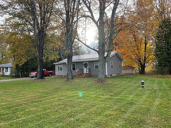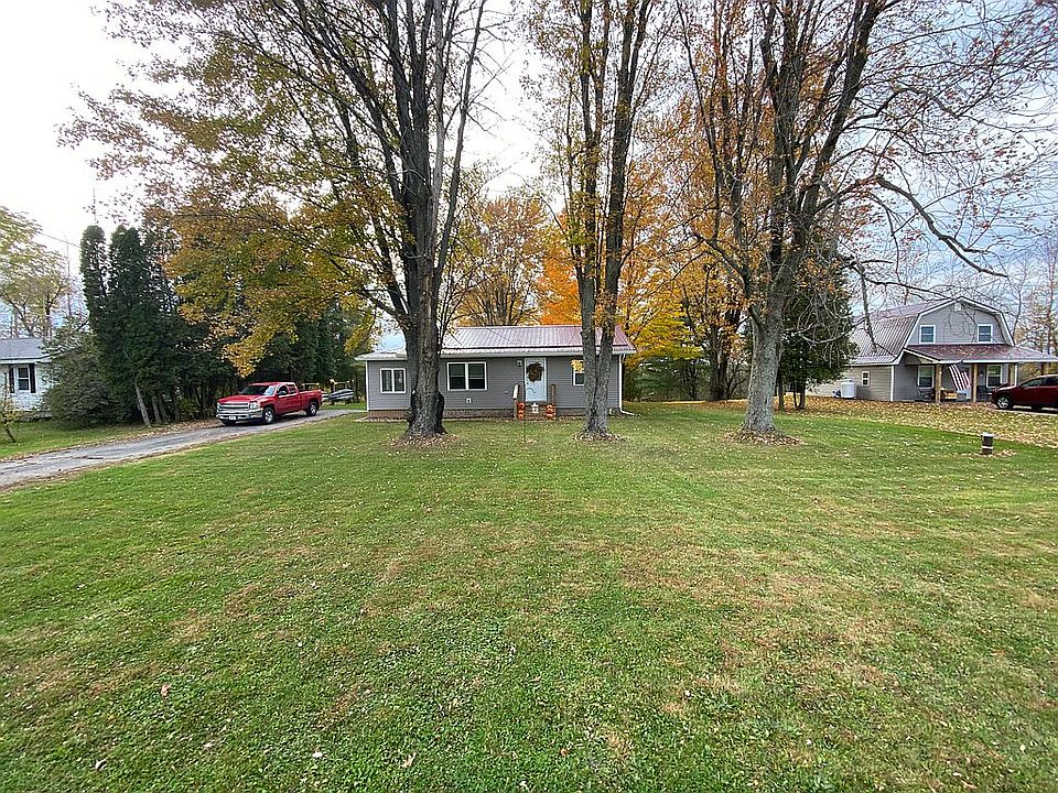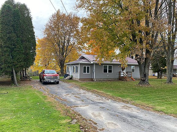 Completely remodeled in 2020, .68 acres, 2 bedroom, 1 bathroom Ranch in Massena situated on a nice country lot with mature Maple trees, bordering a creek. This home was completely gutted to the studs and offers New: Front porch, seamless gutters, vinyl siding with 1 inch Celutex, vinyl tilt in windows, all exterior and interior doors, sheetrock and insulation, wiring, plumbing (Pex), water heater, water softner, propane monitor heater as well as electric baseboard and beautiful laminate flooring throughout with the exception of sunroom and bathroom. The new kitchen has white cabinets, custom made and installed countertops, newer matte stainless steel appliances to include dishwasher (installed 2022), glass top convection stove, microwave and large french door fridge w/ice maker, front water/ice dispenser and bottom freezer. The bathroom is new with a 48" shower. There is a new drilled well and new septic system. The sun porch was insulated underneath, closed in and extra insulation in walls with electric heat to make it a year round room. Massena Electric!!! Available for walk through by appointment only.