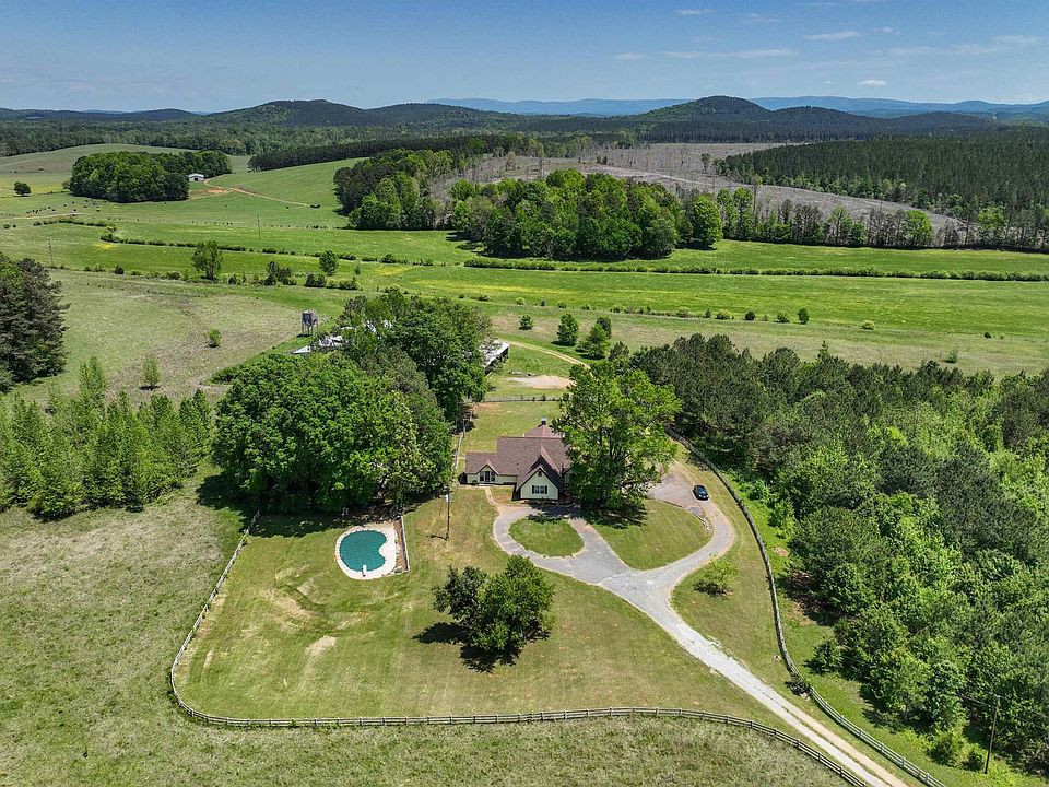 51 ACRE ESTATE WITH MAIN HOUSE, A GUEST HOUSE, GUNITE POOL, SCREENED IN POOL/GRILLING PATIO, A 66 X 100 METAL BUILDING, BARN WITH AN OPEN STORAGE/DOCKING AREA. IF THAT IS NOT ENOUGH THERE IS FENCED PASTURE AREA. THE HOME WAS RE-ROOFED IN 2019, HOUSE PAINTED IN 2023 HVAC IN GUEST HOUSE REPLACED IN 2023 AND MAIN HOUSE IN 2019. ALL APPLIANCES IN THE KITCHEN EXCEPT DISWASHER WERE REPLACED IN 2019. THE HOME FEATURES BEAUTIFUL WOOD FINISHES AND TONGUE AND GROOVE VAULTED CEILINGS. THERE IS A WOOD BURNING FIREPLACE IN THE FAMILY ROOM AND IN THE MASTER BEDROOM. ALL 3 BEDROOMS CAN SERVE AS A MASTER WITH A BATH. THE XLARGE LAUNDRY ROOM HAS AN ABUNDANCE OF STORAGE SPACE AND ROOM FOR EXTRA REFRIGERATORS AND FREEZERS AS WELL AS WASHER AND DRYER. LAWN MOVER AND TRACTOR WILL REMAIN WITH THE PROPERTY. THIS PROPERTY HAS ALOT OF POSSIBLITIES. IT HAS BEAUTIFUL VIEWS AND IS VERY PRIVATE. THE PROPERTY IS ON A WELL.