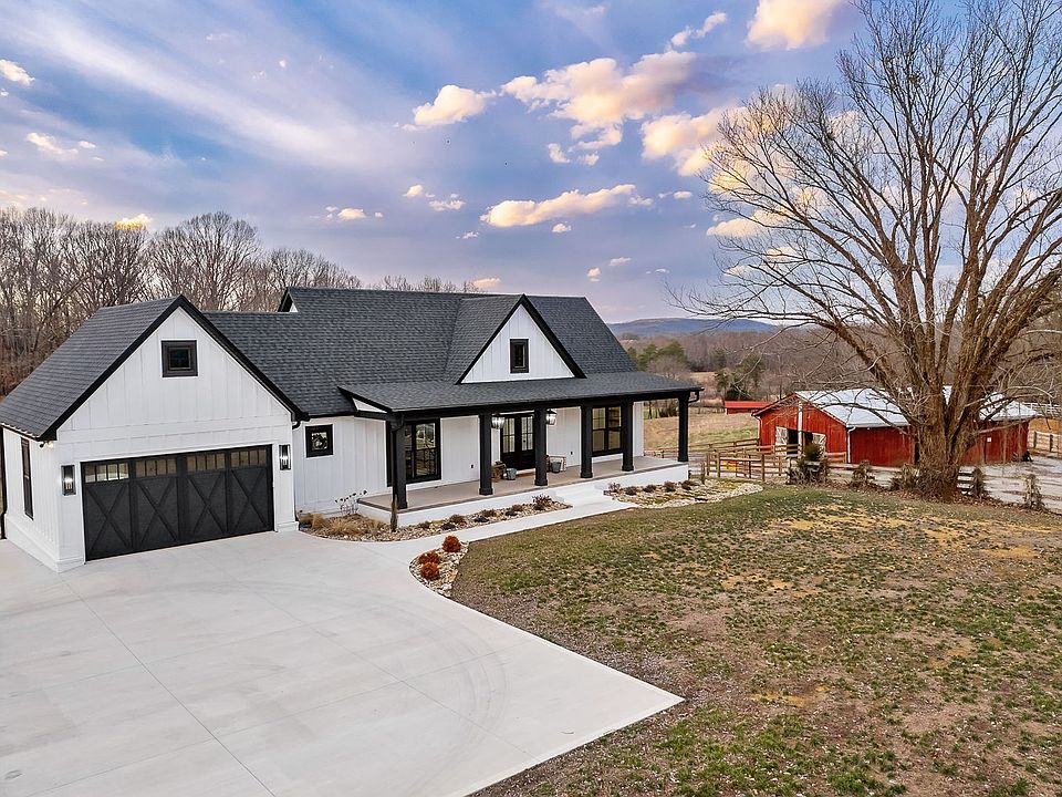 Nestled on 10 acres on a dead end road, 1 .5 miles off Highway 111 is a modern farm house awaiting its new owner! Completed in November of 2021 this custom upgraded home is unlike any other. Main level living is open with cathedral ceilings, Incredible natural lighting , beautiful hardwood flooring. Kitchen comes with all stainless appliances including a gas range stove, quartz counter tops, inset custom cabinets with lighting. Brick backsplash, bar seating at center island, eat in area and walk in pantry. Utility room and half bath off the garage. Primary suite offers tile shower, linen closet, built in closet shelving and drawer system with remote lighting. Enjoying privacy from the screened in back deck over looking incredible farm views. Basement is fully finished.