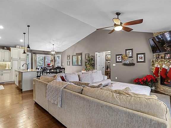 Park-Like Setting Right Outside your back doorstep!! That's right, this amazing like-new ranch home has the setting you've been looking for! Cozy up for the holidays in this meticulous cared for home in Cedar Berry Estates! Step inside from the covered front porch and be greeted with an open-floor plan concept offer a split-bedroom floorplan. The master suite offers tray ceiling, large walk-in closet, double vanity, and custom tile shower! Enjoy the vaulted living room with fireplace with stone accents and wood mantle. The amazing kitchen offers custom cabinets with crown molding, center island, tile backsplash, stainless appliances, pantry with pull-outs, and tile backsplash. Breakfast room offers a bay window so you can enjoy the private backyard and the 12X12 covered deck! Open staircase leads you to the finished lower level which is perfect for entertaining! Plenty of opportunity to create a 4th bedroom or possible in-law quarters! Wet weather creek and plenty of room to explore!