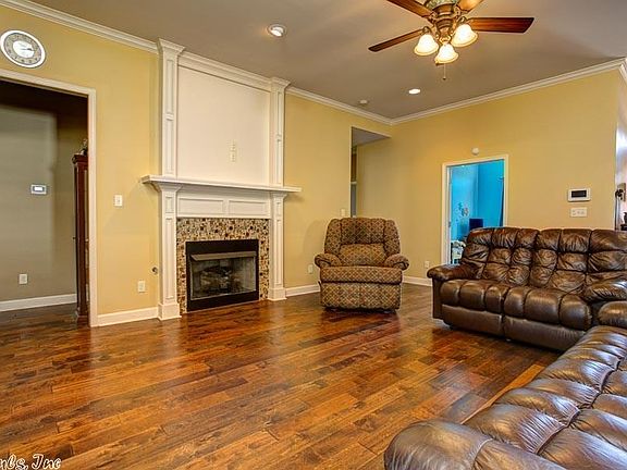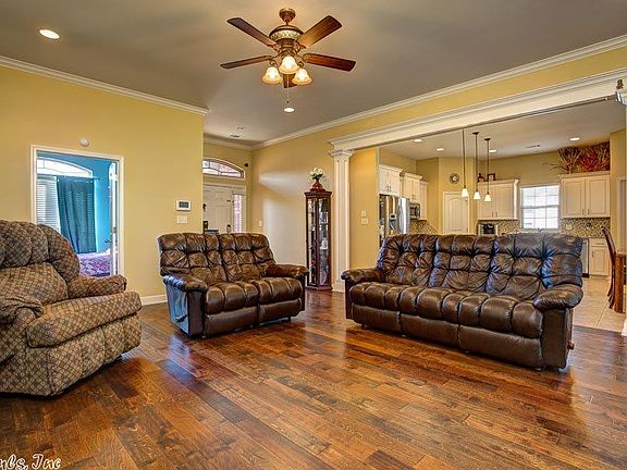 Get the best of country living yet be close to town! Open living area and split bedroom plan make for the perfect family home. Beautiful eat in kitchen with 20in tile floors, slab granite counters, expansive island, and SS appliances. Spacious family room features 5in handscraped hardwoods, gas log fireplace, & detailed millwork throughout! Enjoy outdoor living in your big sized covered porch, fully fenced yard and ample storage. Added bonus with a storm shelter in 2 car garage!