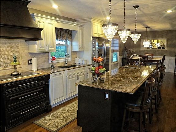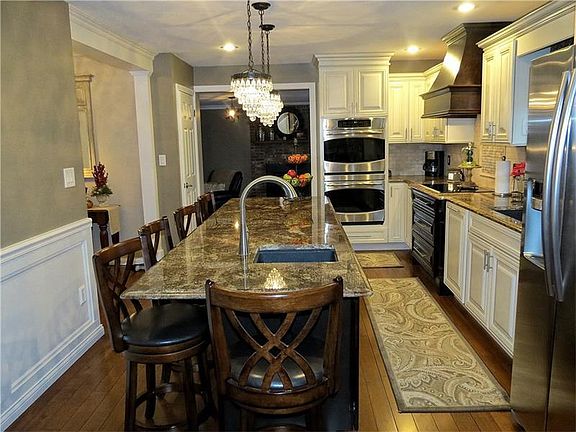 As if taken from the pages of a prestige's home magazine this 4 bedroom 3 bath home is a rich combination of sophistication and modern updates. Recently transformed with uncompromising quality & craftsmanship by the current owner, the center piece of the home is the spectacular 32X12 chef's kitchen featuring granite counter tops, SS appliances, maple & cherry cabinetry with soft close design, maple hardwood floors, travertine tile with inlay accent, 2 black granite composite sinks with high profile faucets, 2 built in wall ovens, elegant pendent lighting & a 9X3 kitchen island with prep sink & seating for 5! A spacious front to back main floor family room is adorned with crown molding & warmed by a floor to ceiling brick fireplace with clean burning pellet stove - a custom built-in secretary desk adds practicality to the room. The king size accommodating master bedroom includes an in-suite bath, new carpet, crown molding & double closet. This fabulous home boasts many more wonderful features including 3 gorgeous new baths, large secondary bedrooms (one with a charming window seat & built-in storage cabinets), distinguished judges paneling, tasteful fixtures & color palette, alfresco deck with miles of views, new landscaping with inviting paver sidewalk, intimate brick patio, over-sized 2 stall garage, large storage shed, cul-de-sac neighborhood, Central Valley Schools etc. Great location convenient to shopping, dining, schools, I376 etc. all less than 5 minutes away! Home Warranty offered for peace of mind! Come See - You Won't Be Disappointed!
