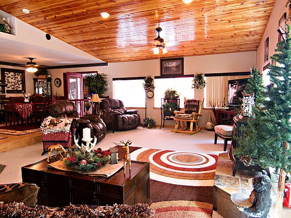 Surrounded by forest, lush gardens with beautiful flowers, shrubs, planters and tress, all within minutes to Keyhole! This home is truly a retreat with 5.84 acres, an exquisite and well maintained beautiful home featuring 3 beds and 2 full baths. You will love the woodwork in the home as well as the surround sound, and enclosed sun room area that provides an entire extra living space. This home also has a 30x40 heated shop, 2 spaces for RV hooks ups, a chicken coop and large storage shed!