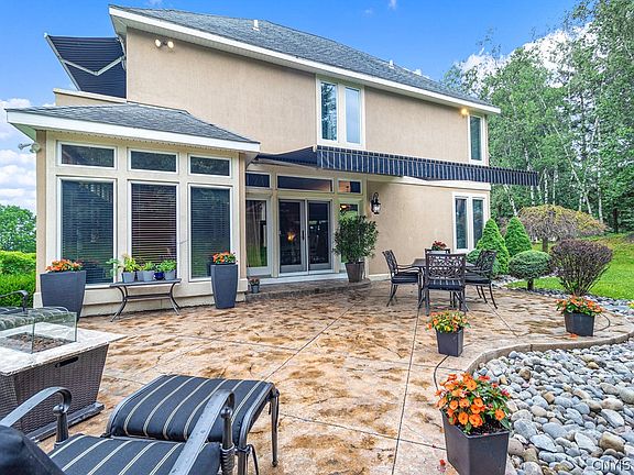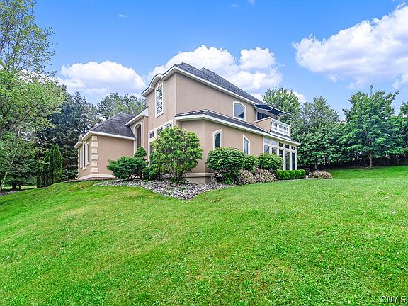 This beautifully custom crafted 4 bedroom home was built to perfection and is nestled on a beautifully landscaped lot offering scenic views of the Mohawk Valley. Every turn will amaze you as you walk into the 2 story foyer boasting the angular presence of each room. A stunning designed kitchen with breakfast nook opens to an elegant dining room, charming living room with a gas fireplace for gatherings. The 2nd floor rounded landing showcases each of the 4 bedrooms. The Master Bedroom leads to a perfectly designed balcony and a stunning master on suite. Additional amenities included 4 zone radiant heating system, fully finished basement, an entertaining room, full size gym and another full bathroom. You can't resist falling in love with this home.