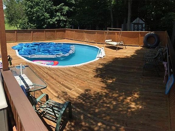 Missing summer already? Enjoy this above ground, heated pool and large deck next summer along with a great house on .73 acres in Jackson Twp. This beautifully landscaped, split entry home has 3 bedrooms and a full bath. The lower level has a finished den and bar; great for entertaining and plenty of storage. The partially fenced yard is perfect for pets. Lots of mature trees on the lot for privacy.