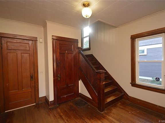 Nice front porch on this 3/4 bedroom square Colonial on beautiful Crawford Street near Highland Park. Brand new tear off roof. Some natural wood and pocket doors. Large 2 car garage. Fenced backyard.