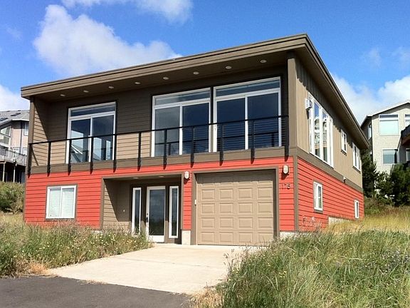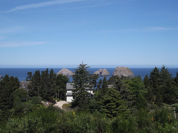 Beautiful modern contemporary home w/ stunning ocean views. Wake up to view of three Arch Rocks. Open kitchen w/high end finishes and appliances. Window walls. Master suite w/walk-in shower and double sinks. Large guest bedrooms. Tiled entry & baths. Cherry wood floors. Propane fireplace. Deep garage. Metal roof. Over 1,000 additional sq/ft(unfinished) on lowr level. Deed restrctions protect view. Wheelchair stair lift installed. Wall mounted TV, and extra refrigerator in basement included in sale.