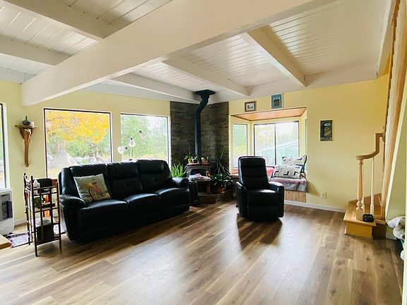 An exquisite retreat awaits with this remarkable property! Nestled on a private 5-acre parcel at the end of De Persia Drive. This home offers the perfect blend of proximity to town amenities and the tranquility of your private hideaway. Enjoy breathtaking views from every angle, complemented by the elegance of 4 bedrooms and 2 full bathrooms. Recently updated with new vinyl plank downstairs, the great room and upstairs office exude timeless charm. With individual heating/cooling units for personalized comfort and a spacious deck overlooking the landscaped backyard with a fenced dog yard. This residence defines both serenity and privacy.