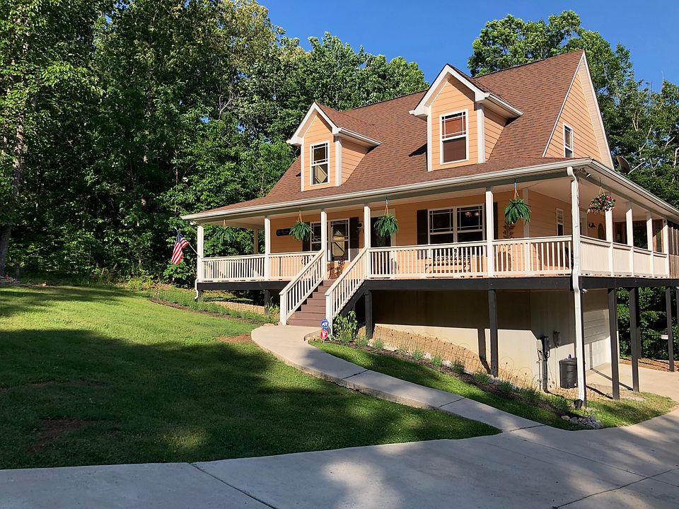 Charming Secluded Home Near Center Hill Lake! 12 Month lease term. Available per April 1. Nestled in a peaceful cul-de-sac, just a 15-minute drive from the scenic Center Hill Lake, this spacious home offers the perfect blend of seclusion and convenience. Situated on a wooded 3-acre lot, the property boasts wrap-around porches, a large screened-in porch, and a sun deck, perfect for soaking up the tranquility of the surrounding nature. The interior is equally impressive, featuring a large primary bedroom with bathroom and walk-in closet, located at the livingroom level, with direct access to the sun deck, providing a private retreat for relaxation. The home is designed for comfort and practicality with a two-car garage and full size unfinished basement, offering ample storage space and versatility for any lifestyle needs. Home can be rented with or without furniture. 10 Min. drive to downtown, shops & restaurants. Don't miss this opportunity! 12 Month minimun lease, available per April 1. Furniture available for lease or purchase if desired. High speed fiber internet available, electric car charger available in garage. Utilities excluded.
