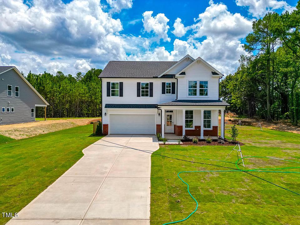 On this over half an acre homesite sits our popular Selma floor plan, with it's Traditional design and a side entry garage, this home is sure to impress the second you arrive. On the front porch you will find our exclusive smart door delivery center, for safe, secure package delivery in a heated/cooled space. Inside, the foyer creates a welcoming hall with beautiful trim with crown moulding, board and batten wainscoting, that leads right to the main living area. The family room adorns a fireplace with additional high glass windows for tons of natural light. The kitchen has an oversized island for three-sided seating! And the cafe overlooking the patio is a cozy space for meals and entertaining. The pocket office adjacent to the cafe is the perfect dedicated work station.Our exclusive messy kitchen helps keep things neat, with it's extra sink and window for the perfect prep area. (The walk-in pantry is next door for easy access!) The first floor also has a bedroom and full bath, storage under the stairs, and a drop zone near the garage door. The patio is covered overlooking the beautiful trees in the rear yard.