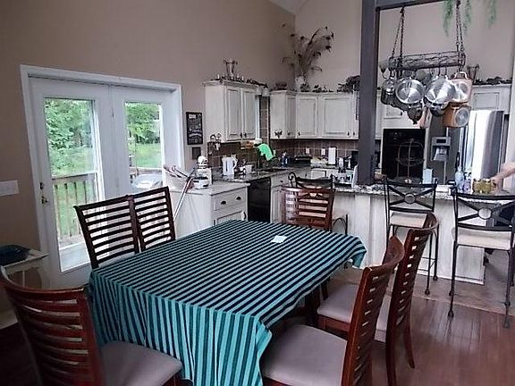 Privacy at its best -Beautiful 8 acres -30 ft. high ceilings -Rock FP- Some New windows -Roof 2 yrs old - Spring fed pond w/fish - 3-section deck - Granite countertops - Gazebo - Barn - Fencing - Gated Entrance - Woodstove - City and well water - Driveway is part concrete