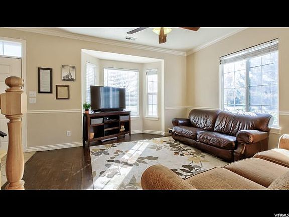 Beautiful end unit townhome with best location in the complex. All high end appliances to stay with home including stainless steel side by side refrigerator and high performance front loading washer and dryer. Dark wood floors throughout the main level. Easy access to clubhouse and pool. Fenced in backyard includes a storage shed. Spacious attic and crawlspace storage areas. Beautifully maintained community in a neighborhood nestled at the base of the beautiful Springville mountains. Square footage figures are provided as a courtesy estimate only and were obtained from the county. Buyer is advised to obtain an independent measurement.