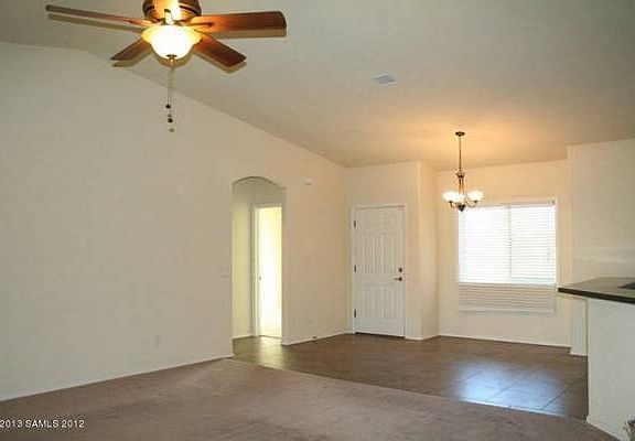 Great family home. This house has just the right amenities, central air and ceiling fans throughout to include 2 in the covered patio out back . Low care landscaping on a 3/4 acre lot and artificial turf accents in front. Kitchen opens to great room. Plenty of storage throughout. Split floor plan with the master bedroom boasting a large bathroom with walk in closet. huge 2 car garage. Bedrooms and living rooms are carpeted and the remainder is tiled. Quick highway commute to Ft. Huachuca (15min), Tucson (45min) and Patagonia (25min).$60 Application Fee per adult$5,000.00 lease option assignment fee to own