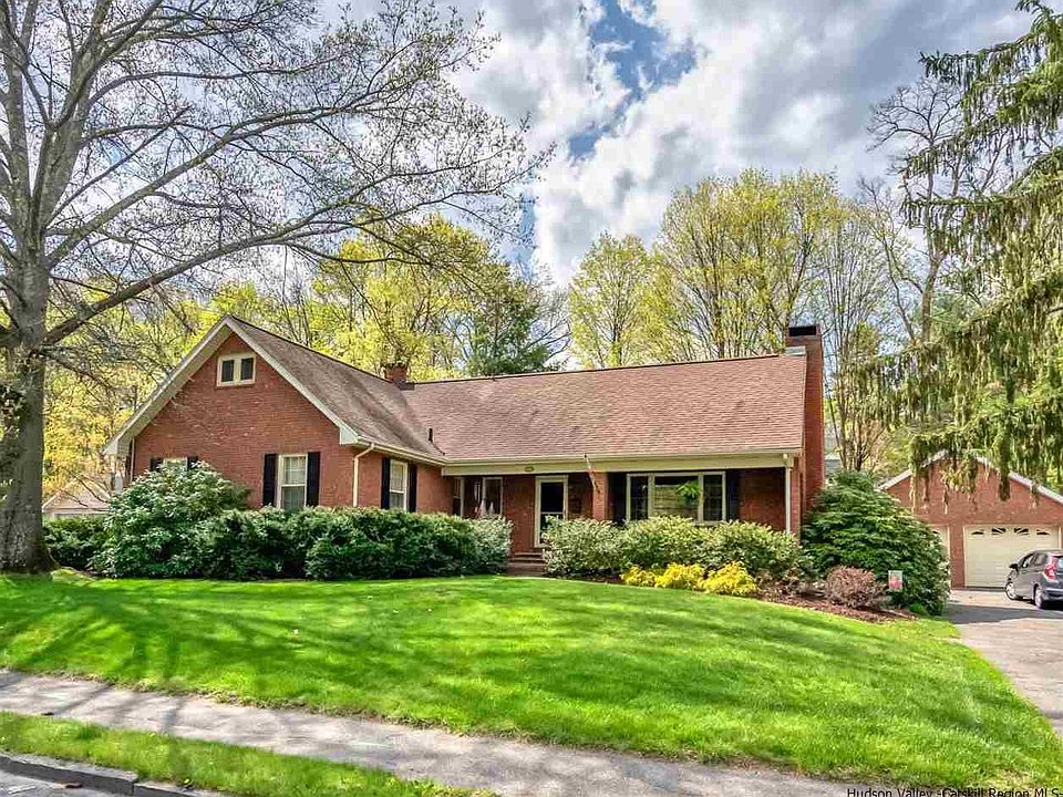 HIGHEST AND BEST BY SUN. MAY 16TH AT 4PM. This Brick Ranch Beauty with an inviting rocking chair front porch is centrally located in the Historic City of Kingston just minutes to the Uptown Stockade area, the Downtown Waterfront and the awesome Midtown Art Scene. Great restaurants, shops, rail trails and bike lanes. This Small City has it all ! This home is move in ready offering a spacious Livingroom with a marble fireplace, Diningroom with built-ins, 3-bedrooms, Hardwood floors, replacement windows and a great kitchen with unique wood cabinets, a greenhouse window, skylight and sliders to a large deck and upper deck to a pool. There is a paver walkway to the 2-car brick garage at the end of a beautifully landscaped yard. The lower level includes a family room with a brick fireplace, craft room and workshop area. Don't miss this one! Located just 2 hours out of NYC. Minutes to the NYS Thruway Exit and a Trailways bus station back and forth to NYC all day long.