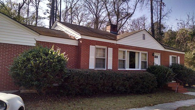 Solid older brick house has very private setting with paved drive and front yard. Two rooms with separate entrance would make excellent office or bedroom with half bath. House could use some updates, but has a lot to offer.