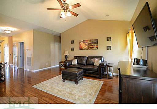 Convenient Living in this One Owner, True One Story home. The only room upstairs is a Bonus Room Upstairs that could be a 4th bedroom (no closet - would have to be added. This room would also be great for a man cave, theater room, or sewing/craft room. Current owners used for all of the above!. Open Kitchen to Great Room, Good Size Master and Screened Porch. Kitchen features Granite Island w/Sink, Stone Back Splash, Stainless Steel Appliances and Fridge Remain. Walk to Community Pool, Playground & fish from the community Lake. Flood insurance is minimal amount per year (please see below), city water and city sewer - no septic! Curbside Trash pick up and low 1% in real estate taxes in Bryan county compared to 1.5% and higher in surrounding counties. Easy living, low maintenance home with small maintenance yard. Bird watch from your screened in back porch where the bugs wont bother you!!