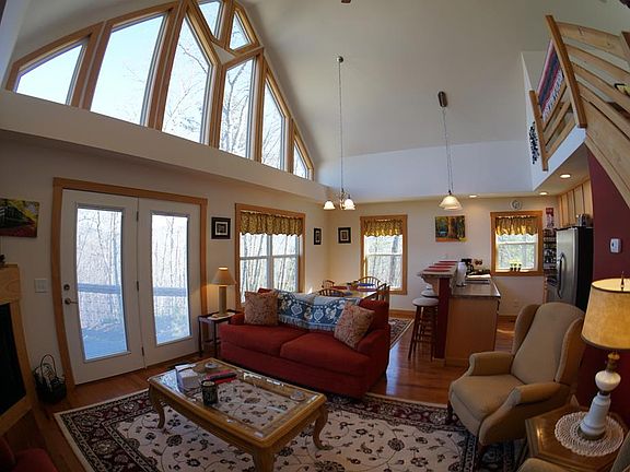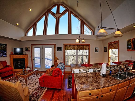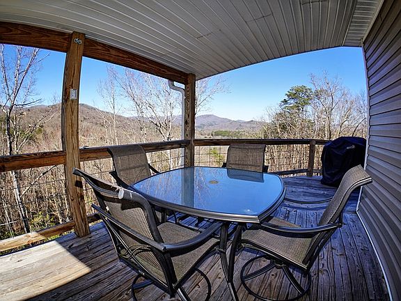 Amazing View!! And it's only about a mile from downtown Bryson City. Cute chalet style home is currently used a vacation rental. Main living is on second level with lots of windows to take full advantage of the views. Property has a full basement with 1-car garage, area for games and a separated room for bedroom or study plus a full bath with shower. Home will come as is mostly furnished, ready for you to rent.