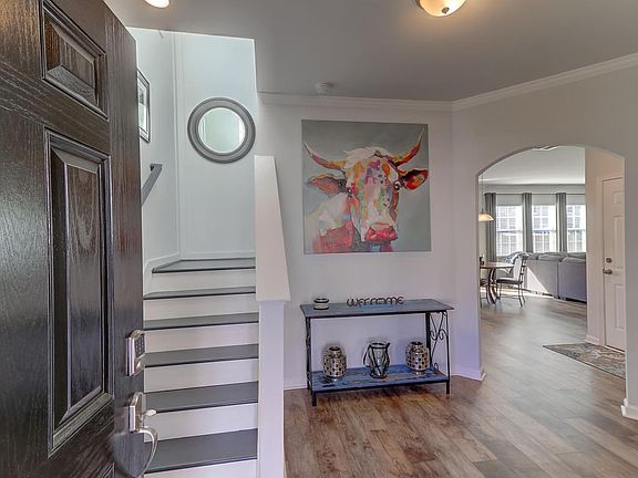 Better than new! Six months old with extra upgrades; wood floors wood stair treads trim package blinds stone front shake shingles concrete patio partial privacy fence and LED lighting. Won't last long! Just off the two story foyer is a formal dining room with nice trim package but doubles as a lovely home office with great views of the front yard and friendly neighbors. The large family room is open to the eat in kitchen and exits through double doors to the large back yard. The new kitchen comes with island granite subway backsplash and stainless steel appliances. Just up the wood tread staircase is a large loft for entertaining as a game room theater room play room or home office. The four bedrooms have walk in closets and enjoy an upstairs laundry room. The owners suite has a large 5 ft. walk in shower raised double vanity and very large walk in closet. Enjoy the lake pool and wonderful neighborhood pavilion for the best birthday parties ever! Move in ready so call for an appointment today.
