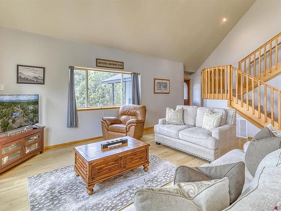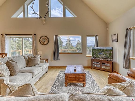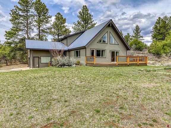 Located in the prestigious Timber Ridge development, where nothing has sold for under $1M since 2021, you'll find this energy efficient Colorado Dream Homes custom ready for its new owner/s. This property is centrally located, just minutes from the National Forest, the San Juan River + hot springs and all the town's amenities. Designed with a smart open-concept layout this home is exposed to tons of natural light and has big sky views to the south. The master, with on-suite bathroom, is upstairs along with a separate office, which the current owners have used as a fourth bedroom. Downstairs you'll find the two guest rooms with shared bathroom, a large laundry and a great room with a high vaulted ceilings that naturally flows into the kitchen and dining areas. Outside there's a brand new trex deck that provides a perfect private setting for entertaining, stargazing, etc (would be a great spot for a hot tub too). This recently fire mitigated 2-acre lot has some beautiful old growth timber and a nice level grassy "front yard" off the deck for the kids to play or to fetch the dog. The two-car garage is heated with a loft. The sellers, when still hoping to live here full time, had envisioned converting the entire space to a multipurpose/game room and building a detached garage/workshop. The home has been recently painted inside and out and is being offered as furnished. The warm and welcoming neighbors, including the resident elk, deer, and turkeys, are awaiting. This opportunity will not last long so call to schedule your showing quickly.