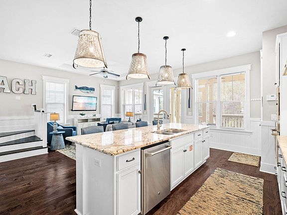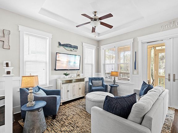 Experience the ultimate 30A lifestyle in this immaculate, turn-key home, sold fully furnished and accessorized, complete with a golf cart for effortless coastal living. Nestled in the highly sought-after NatureWalk at Seagrove, this stunning Sea Glass floor plan exudes charm with its nautical-inspired design and prime location just minutes from the sugar-white sands of the Emerald Coast.A cozy front porch welcomes you with picturesque views of Sunset Pond, while French doors open into the bright and airy dual living spaces. Thoughtfully designed with hardwood floors throughout, a natural gas fireplace, coffered ceilings, and shiplap walls, this home blends luxury with coastal comfort. The chef's kitchen boasts stainless steel appliances, a pantry, granite countertops, and a spacious island with a breakfast barperfect for entertaining. Designed to accommodate guests with ease, this home features two guest suites, a master suite, and a custom bunk room for three. A separate sitting area adjacent to the kitchen leads to a spacious screened back porch overlooking the wooded preserve, creating the perfect private retreat. Additional highlights include a one-car garage, climate-controlled owner's storage, and ample space for a golf cart, bikes, and beach gear. Whether you're seeking a lucrative short- or long-term rental or your own slice of paradise, this home delivers incredible investment potential in one of 30A's most desirable communities!