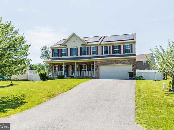 This stone front colonial with welcoming front porch has tons of bells and whistles. You'll find formal living and dining rooms with neutral paint and carpet as well as a large family room with gas fireplace. It opens to the eat-in kitchen with breakfast bar and sunroom with skylights and vaulted ceiling. Sliders lead to a 12x12 deck with steps to a patio and pool in the fenced rear yard. The outdoor oasis is perfect for summer entertaining. Upstairs, the master suite is impressive with walk-in closet and french doors to the luxury bath with soaking tub and separate shower. The additional three bedrooms share a hall bathroom. The laundry is located on the main level for added convenience. The lower level is also finished with rec room, spare/bonus room and full bathroom. This home won't last!