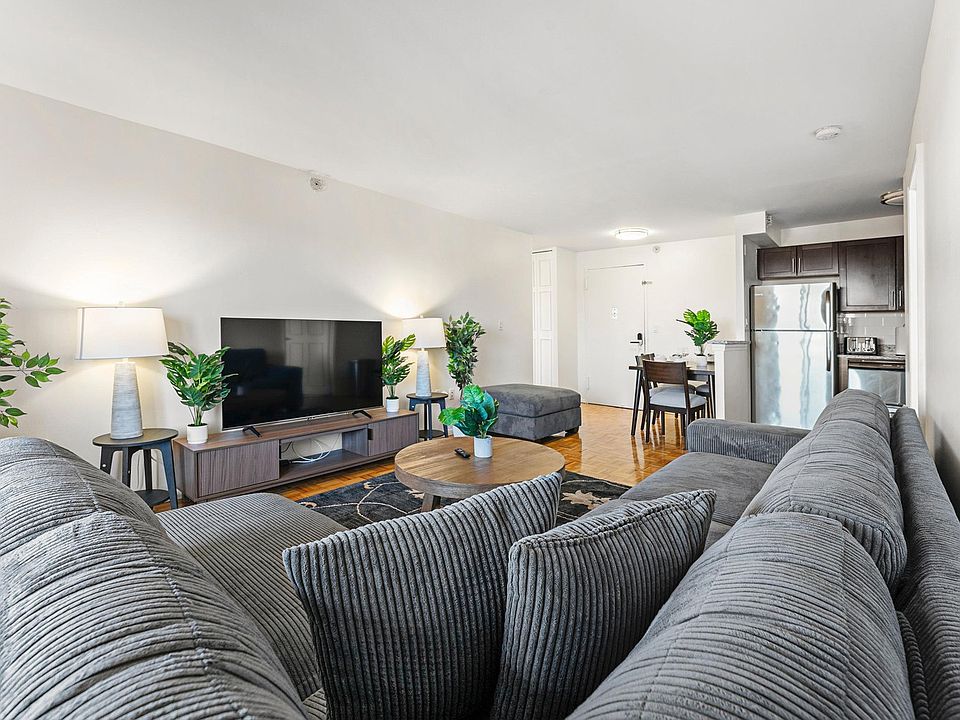 Discover the charm of Boston with this two-bedroom apartment, ideally located just minutes from Boston University. Situated within walking distance to Amory MBTA Green line station and Saint-Paul station, this apartment offers easy access to the city's top destinations. With a king-size bed and two queen-size beds, this home comfortably accommodates up to four guests. Enjoy the convenience of a fully equipped kitchen and a flexible self check-in process. This thoughtfully designed apartment features a fully equipped kitchen, perfect for preparing your favorite meals. The living area includes a comfortable sectional, providing a cozy space to relax after a day exploring the city. Laundry facilities are available in the building for your convenience, though they require a separate fee. Paid parking is available, with tickets purchasable via a machine in the lot. Please note that driving in Boston can be challenging due to expensive and limited parking options. Located in a vibrant area, this apartment is just a short walk from Boston University and a 25-minute walk to Dana Farber, Beth Israel, and Brigham Hospital. Mass General Hospital is a 14-minute drive away, and Northeastern University is 1.9 miles from your doorstep. With nearby public transportation options, including the Amory MBTA Green line station, exploring Boston is a breeze. The apartment is located in a busy area, so street noise is common at all hours. Smoking is strictly prohibited in the apartment and building, and any attempt to host parties will result in immediate termination and legal action. Pets, including emotional support animals, are not allowed. However, true service animals are permitted with proper documentation. Early check-in and late check-out are available for a small fee and are subject to availability. A doorbell camera is installed for security purposes.