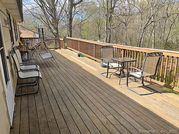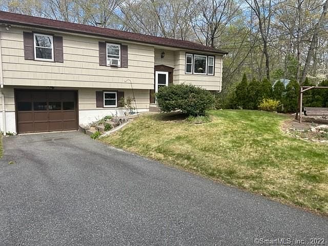 Great location on a quiet country road and setting. This home is set back off the road behind a stone wall with a large back deck overlooking a large lot of beautiful trees and natural environment. The raised ranch style home has a kitchen that opens to the dining room and living room. The hardwood floors are throughout the entire main floor, except for tile in the kitchen and bath. 3 spacious and bright bedrooms on the main floor with a full bath are also on the main floor. The lower level is finished with a living are, office, bedroom and second full bath. Access to the garage is also from the lower level. Come see all that this home has to offer.