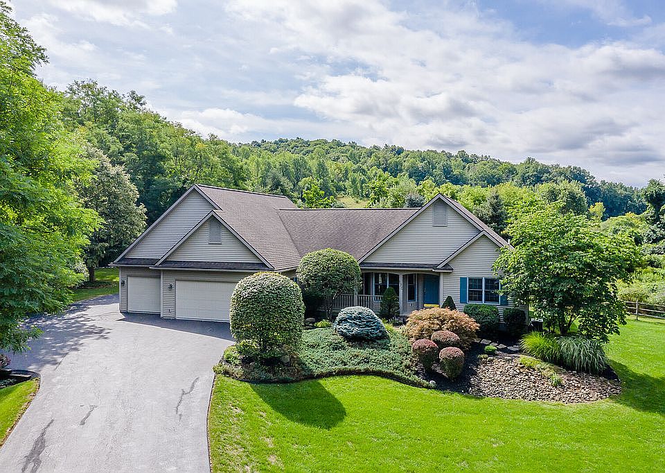 WOW! Impeccable ranch you have been waiting for! Pull up and be impressed with the set back and landscaping! Enter home and you will find a large great room complete with cathedral ceilings and cozy gas fireplace. Area for office or formal dining area. Eat-in kitchen has solid surface counter, breakfast bar and custom cabinets galore! Two bedrooms and one bath on one side of home! Other side is the master bedroom with tray ceilings, walk in closet! Master bath has a stand up shower! HUGE bonus room perfect for family room, in-law area, teen suite, office, playroom- YOU decide! HUGE FULL BASEMENT perfect for storage and/or future finishing! Private entrance! 2.5 car garage! Private backyard backing to woods! Central air!