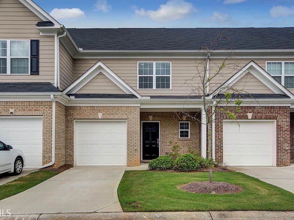STUNNING TOWNHOME IN SUPER-DESIRABLE STONEBRIDGE! Upgrades galore!!! This spectacular, nearly-new home has hardwood flooring throughout, including the stairs, and tile flooring in both full bathrooms. There are gorgeous granite counter tops in the kitchen, master bathroom AND secondary bathroom! Stainless steel dishwasher, range, microwave and refrigerator. The master shower is upgraded with full tile walls and floor. Vaulted ceilings in all bedrooms make the spaces light, bright and airy. Laundry is located upstairs near the bedrooms. The backyard is fully fenced and private. All lawn maintenance and garbage removal is covered by the HOA dues. This is a fabulous neighborhood with swim, tennis, playground, park and nature trails. Close to shops and eats!