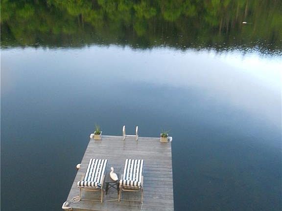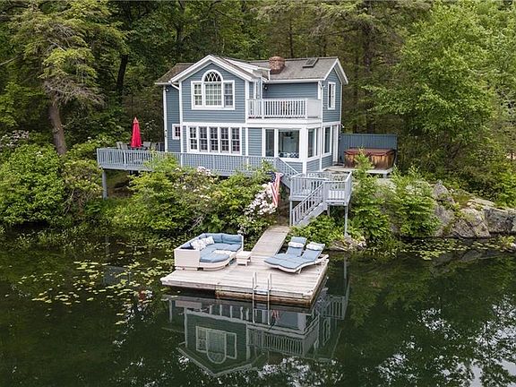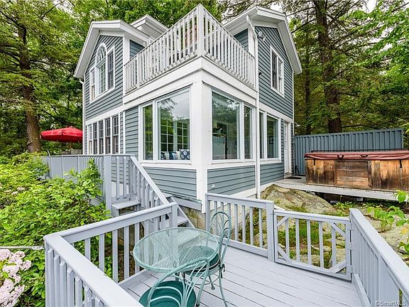 This adorable lake cottage sits directly on pristine, spring-fed Green Pond with views from every room. You will fall in love with this private, 1-acre property that boasts 390 feet of water frontage with two docks in the gated community of Candlewood Lake Estates. Relax in your hammock while listening to the soothing sound of your own babbling brook and waterfall. Sip your morning coffee on your deck and watch the day unfold on this gem of a lake, the cleanest in Connecticut. Quiet and removed from the noise of the boats on Candlewood, yet within walking distance of the community docks and beach. There are four beaches in Candlewood Lake Estates - 2 on Green Pond and 2 on Candlewood. Canoe, row boat and paddle boat included Outdoor shower, Generac full house generator, hot tub, complete water-filtration system and garage renovation are just some of the updates in this wonderful weekend getaway. Garage has lift- can fit a SUV plus smaller vehicle on lift.Activities: Appalachian Trails; Farmers Markets; Antiquing; Connecticut Wine Trail; Star Gazing; Connecticuts Largest Flea Market (The Elephants Trunk Bazaar; Sherman Playhouse Live Theater; 28 mi. Scenic Drive North on Route 7 ( see covered bridges and Bald Eagles along the way.Movie theater, restaurants and shops in nearby New Milford.