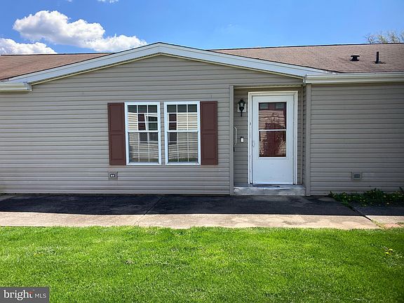 This home is move-in ready and awaiting your offer to purchase in the 55+ Village of Buckingham Springs.  Pull into your 2-car off-street parking space, a short walkway to a huge patio, and your front door.  You will be impressed by the brand-new laminate flooring that makes it much easier to move about the living room and other parts of the home.  Straight ahead is the dining room space with a huge sunroom to the right with loads of windows that allow the natural light to flow in.   The kitchen has a refrigerator, stove/oven dishwasher, and plenty of cabinet space to accommodate your needs.  A  convenient laundry room with a washer and dryer, an entry to the primary bathroom, and an exit door to the outside storage shed are steps away from the kitchen.  A spacious primary bedroom is just off the living room and has a roomy clothes closet.  Off the sunroom, you will discover the guest bathroom and second bedroom which is great for privacy when entertaining guests.  Make your appointment and see how you can make this home your own!!