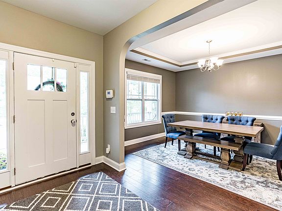 Welcome to this stunning 4-bedroom, 2.5-bath home located in the desirable Stone Ridge neighborhood of Clayton! As you enter the home, you'll be greeted by a foyer with 9ft ceilings and elegant hardwood floors. The spacious kitchen features stainless steel appliances, granite countertops, a large island, and a breakfast nook. The cozy family room boasts a gas fireplace and easy access to the screen porch. The separate formal dining room is perfect for hosting dinner parties and special occasions. Upstairs, the huge luxurious master suite features a tray ceiling and a spa-like bathroom with dual vanities, a garden tub, and a separate shower. The three additional bedrooms are generously sized and offer ample closet space. The screen porch, patio, and fenced in backyard are great for outdoor entertaining or simply enjoying the beautiful North Carolina weather. Conveniently located near shopping, dining, and entertainment options at Flowers Plantation and downtown Clayton including the Glen Laurel Pool and Neuse Golf Course. Neighborhood located directly across the street from Powhatan Elementary School.