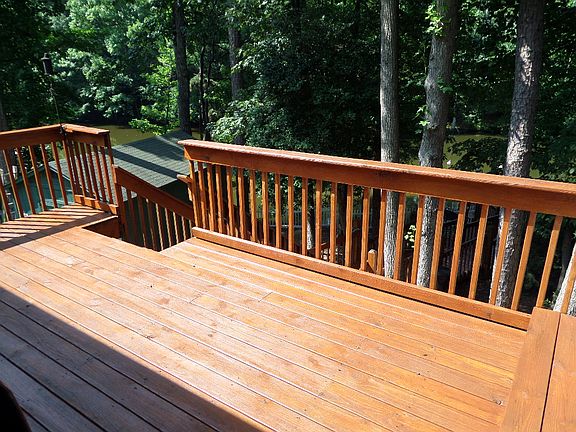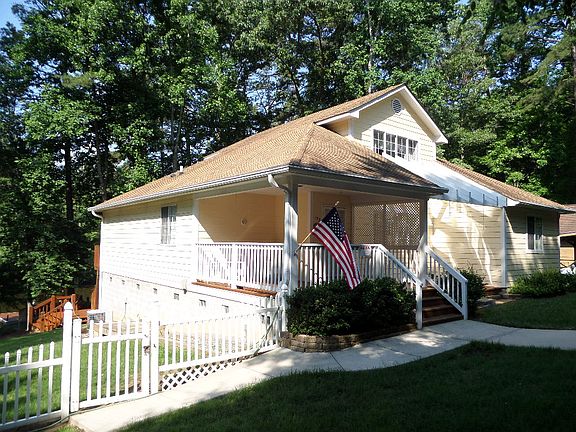REDUCED $20,000! Pristine home on 2 lots & 100 Feet of water frontage on High Rock Lake. Great one level home w/a bonus rm which could be a 4th BR without a closet. Double sided Fireplace between the LR and Den. Hardwood floors throughout most of the ML, stairs and in bonus room. Flexible floor plan to suite your needs. Covered front porch, front & rear decks, 25X13 screened porch, and a vinyl fenced private yard. Private dock & floater w/fantastic lake view, 2 outbuilding & covered parking. Must see