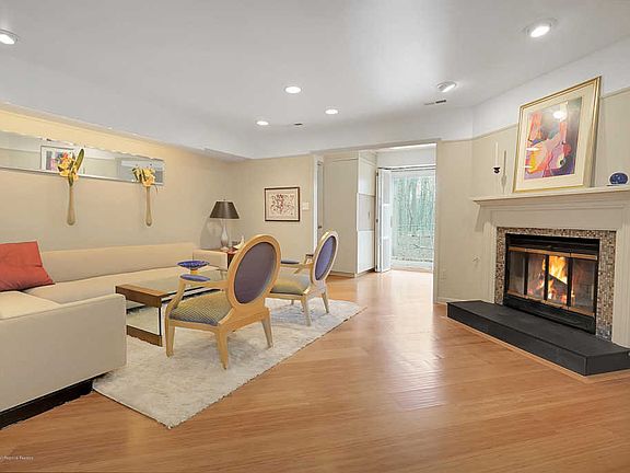 This modern 1st floor, west facing condominium features a professionally designed living space, including bamboo floors, built-ins & plantation shutters. The stunning kitchen features white quartz countertops, glass tile backsplash & high-end SS appliances & cabinets. The living room has a gas fireplace & contemporary design elements that make it highly functional as well as a great space for entertaining. The den provides a custom built-in wall unit, perfect for your home entertainment system. Sliding glass doors provide access to private back patio with views of large adjacent wooded area. The master bedroom has two double closets & private master bath. The home also offers separate laundry space with washer and dryer, parking in a detached garage & 1 assigned outdoor parking spo