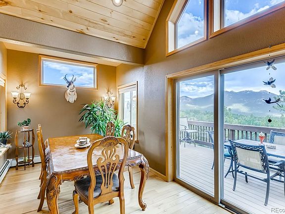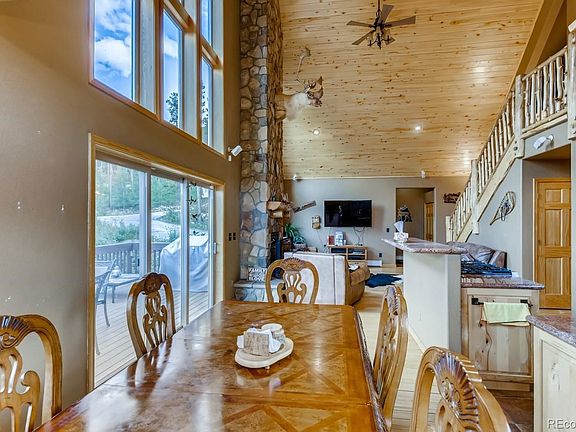 Welcome to the quintessential Colorado dream home! Perfectly situated among the towering pines & golden aspens, this refined-rustic retreat offers soaring wood-paneled ceilings with BREATHTAKING views through the wall of windows that flank the 2-story stone fireplace, rustic, hand-hewn logs adorn the mantel & window sills, and up the custom log-rail staircase you'll find the Eagle's nest; a loft-style master retreat with vaulted ceilings, full en-suite bath, and it's own amazing views! Two main floor bedrooms and a full bath would be enough, but this home also offers a basement retreat that is second to none. Plush and luxurious carpeting, a full wet bar with custom cabinetry, private deck, private hot tub with LED lighting, designer light fixtures, and a stunning bath featuring custom cabinetry and lighting, as well as a wine cellar or tasting room perfect for connoisseurs or collectors alike. Whether it's your dream home or your vacation home, THIS is Colorado living at it's finest. The house includes most of the furniture, hot tub , pool table, all appliances, TV's sound system, hanging decor, dining room furniture, all bedrooms furniture, all animal mounts, gas grill and patio furniture