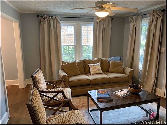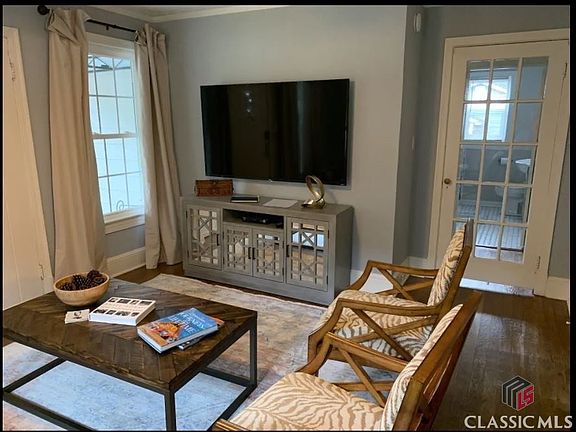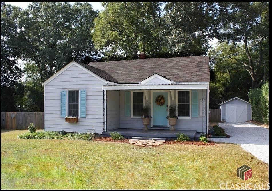 Nestled in the heart of Athens, GA, this charming renovated bungalow exudes warmth and character. With its inviting porch and vibrant blue door, the exterior welcomes you into a cozy haven. Inside, the open-concept layout seamlessly blends modern design with rustic elements. The kitchen boasts stainless steel appliances and custom cabinets, while hardwood floors extend throughout, enhancing the home's timeless appeal. Sunlight streams through large windows, illuminating the quaint living spaces. The bedrooms, adorned with soft hues and vintage accents, offers a serene retreat. The private fenced backyard is quite an oasis and invites outdoor relaxation. An additional feature of this charming property is the fantastic carriage house which offers additional storage and unlimited uses. This bungalow embodies the perfect blend of contemporary comfort and classic charm, making it a delightful residence in the heart of Athens.