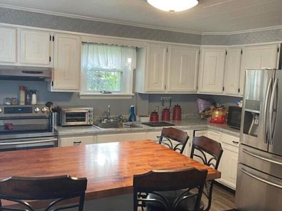 Spacious 2 story home with 3BR, 1 1/2 BA.New floorings and recent updates. Insulated with newer windows. Laundry on first floor. Oversized lot with apple and maple tree. 2 car detached garage. The house is heated by pellet stove. Oil furnace, domestic water, upstairs would need baseboard units added. Hot water heat is supplied to the downstairs.