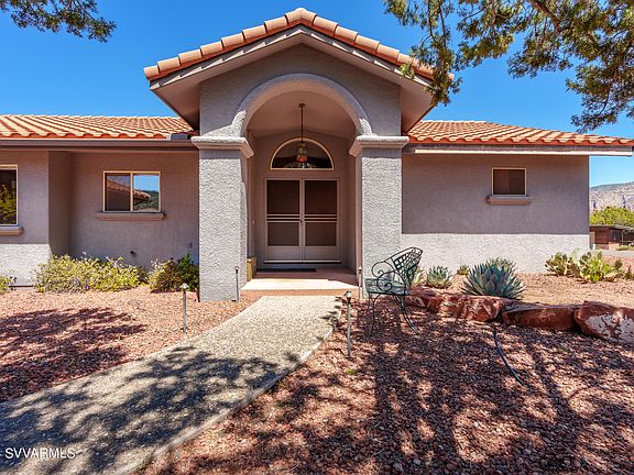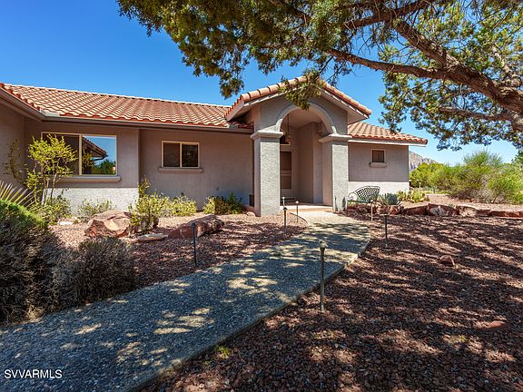 The Red Rock views, tranquility and price you want to find in a Sedona home!! Bring your creative design ideas to this spacious 3 bedroom 2 bath home. Ideal split floor plan for privacy, light bright living and dining spaces. The Kitchen also includes additional space for casual dining or potential work space, plenty of cabinet/storage available. Beautiful yard space with clear red rock views, shade trees and serenity. Shopping, dining, hiking, golfing and more are all nearby. Opportunity is knocking, who will be the one to open this door first??