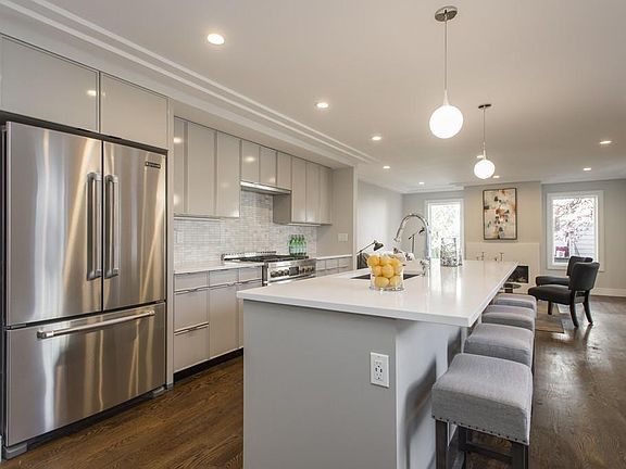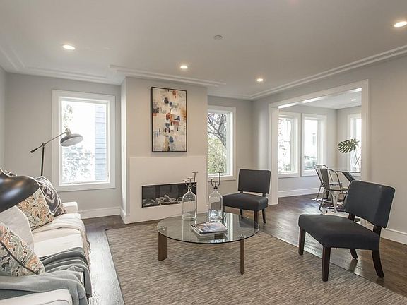 This remarkable, newly constructed SF custom designed home presents an abundance of oversized windows,10' ceilings that offer a natural rhythm shared with the exterior, a design that prioritizes quality of light, & optimizes use of space. The professional chef's kitchen features Jenn-Air SS appliances, custom light grey beaded edged maple cabinets accented by the Quartz Artic white honed counters. The island easily seats 4 housing a under mounted Jenn-Air Microwave & cabinet storage. This kitchen is perfect for entertaining or perfecting your cooking abilities, in style. A wonderful LR accented by a modern gas fireplace, a separate dining area that fills with ample light. A contemporary oak & wire lined railing system leads up to the BR's, grand suite boasts ample closet space, a well healed ensuite with -Carrera marble - white glazed tile - mosaic shower floor- honed Quartz tops, an elegant balance of neutral tones. Roof deck, finished lower level. This ideal urban Home awaits.