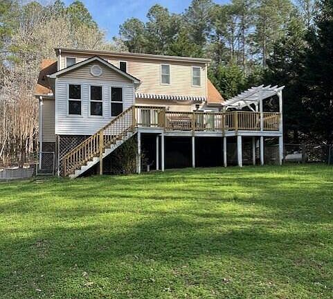 Lake Life as a 2nd home or permanent -- great space in this 4 bedrooms- 2 1/2 baths with full basement; new washer & dryer with new frig stays; new windows in sun room; new sliding back doors with new remote awning on back deck; roof 2018; HVAC 2021; new tankless hot water heater and all the lake toys you can think of including golf cart. you have access to the lake with lake pier. No HOA and sheds stay and you have option for furnished rooms to stay with property ... just move in and ready for fun and relaxation at the lake... Come tour today!