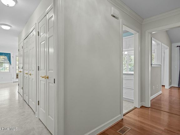 Off the 15th hole on Hyland Hills Golf Course is this well-built custom home that is well maintained and immaculate. The Hardiplank exterior has an octagon shape back deck with retractable shades that sports great views of the golf course. The welcoming front porch has a swing as you enter through the full view storm door. The living room has a cathedral ceiling , solar lights and a cozy gas burning fireplace. Beautiful hardwood floors in the foyer, dining room, hallway and living room. The Kitchen has lots of countertop space for buffets and entertaining. The solid surface stove area has a breakfast bar. This home has tons of storage; the back wall behind the Kitchen is a wall of closets. Off to side of the Kitchen is a Sunroom with its own covered porch and a 2 car garage. Down another hallway are the sleeping quarters, 2 bedrooms, a full bath and the owner's ensuite. The half-acre lot is well maintained with a sprinkler system, mature trees, and green fenced back yard. Truly a must see