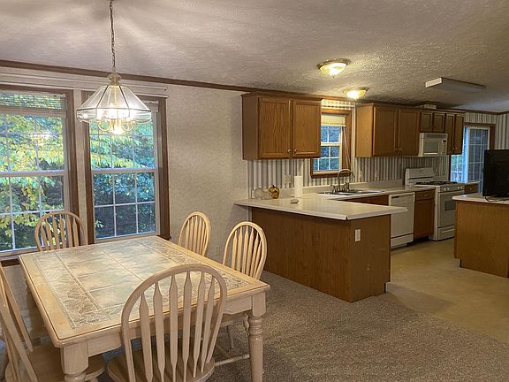 Yearly rental. Spacious 1800 sqft manufactured home with eat-in kitchen, dining room and master suite complete with corner tub, glass door shower and alcove for nursery or office. Fireplace. Laundry room. Oversized closets. Sliders to large deck and more!