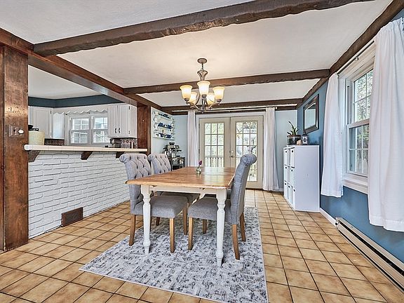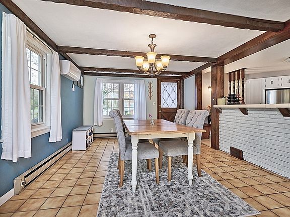 Larger than it seems dormered cape on sprawling 1.33 acres with updates and amenities galore, including brand new heat pump heating and air conditioning, 200 amp electric, gas water heater 2021, and fresh paint. The big sunny kitchen is the heart of the home and features stainless appliances and ample counter space and opens to the spacious dining room with french doors out to the deck and yard. The front-to-back living room has stone fireplace and another set of french doors to the 20x12’ sunroom. Also on the main level are a first-floor bedroom or office and full bath. Upstairs are 2 good-size bedrooms and another full bath, with recently updated tub and surround. The newly fenced-in yard makes gardening, play, and pets a breeze with more possibilities in the acreage beyond.