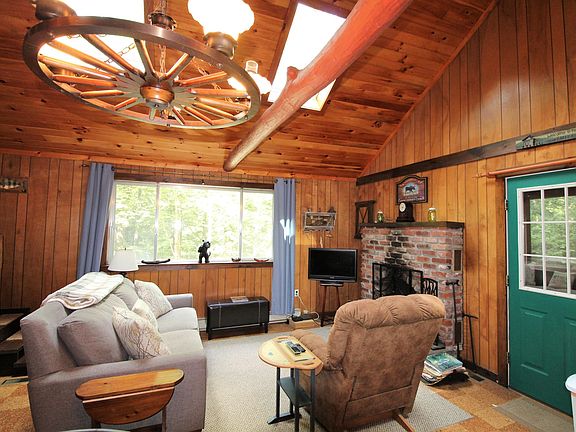 Classic Gumble Chalet located in the desirable Millbrook Community...features include 2 Bedrooms plus loft, an open floor plan, granite counters in Kitchen, forced hot air heat and central A/C...wood burning fireplace, cathedral ceiling, log beams & railings...screened in porch to relax and enjoy the outdoors...large rear deck for entertaining with your fire pit nearby...Millbrook offers a beautiful common area on Lake Wallenpaupack with a swim platform and slide...plus ATVs and golf carts are allowed! Ready and waiting for you to make your own memories...