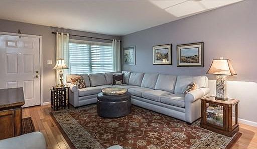Looking for upscale, maintenance-free living at an affordable price? This pristine townhouse in the coveted Finch Farm complex is the one you've been waiting for! This unit is meticulous & features many updates such as newly renovated bathrooms, new hot water heater, and newer stainless steel appliances & flooring. The unit boasts an attractive open layout on the 1st floor w/ a spacious kitchen w/ island & exterior access to an inviting deck, dining room with Hunter Douglas window treatments, living area with fireplace, & newly renovated bathroom. The unit's 2nd floor contains 2 generously sized bedrooms w/ large walk-in closets, a bonus den large enough for various uses, an office nook perfect for work from home days, a beautiful bath, & large dedicated laundry area. If that's not enough, enjoy the central air, gas heat, town water, lush landscaping, walk out basement ready for finishing, 1-car garage, & professional management co. to take care of everything outside of your walls
