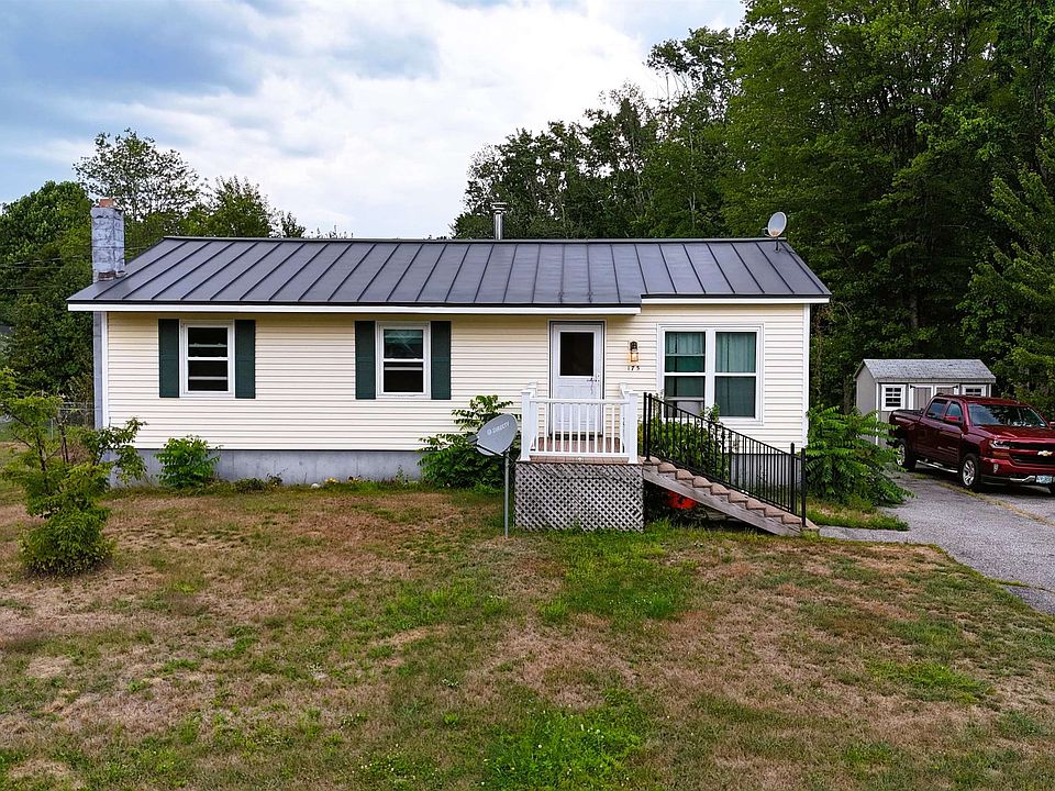 This solid one-level ranch offers convenience, potential, and charm in a great neighborhood. Set on a large, level corner lot, the property features a fenced backyard area—perfect for pets—plus a private deck ideal for relaxing or entertaining. Outside, you'll appreciate the low-maintenance metal roof, vinyl siding, and vinyl windows—worry-free living for years to come. Inside, the home offers a smart layout with all main living on one floor. The bedrooms are ready for your personal touch with flooring needed, making it a great opportunity to add your own style. The full basement is framed, offering tons of potential! It includes a woodstove hookup and bar—perfect for creating extra living space, a workshop, or a home gym. Whether you're a first-time buyer, downsizer, or investor, 175 Liberty Lane offers strong bones, great outdoor space, and room to make it your own. Don’t miss this chance to build equity in a desirable Keene location!